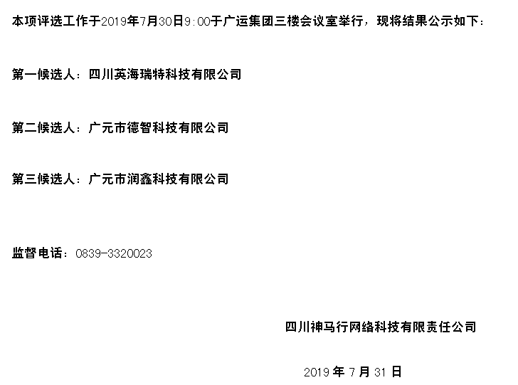 網(wǎng)約車系統(tǒng)開發(fā)及牌照申請(qǐng)認(rèn)證技術(shù)服務(wù)費(fèi)工程項(xiàng)目競(jìng)爭(zhēng)性磋商結(jié)果公告