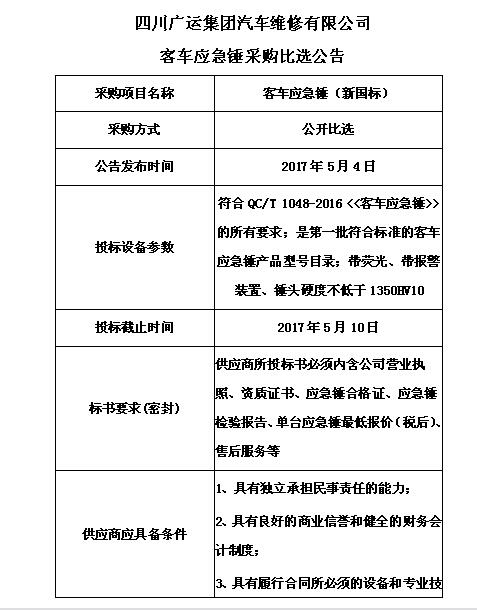 客車應(yīng)急錘采購(gòu)比選公告