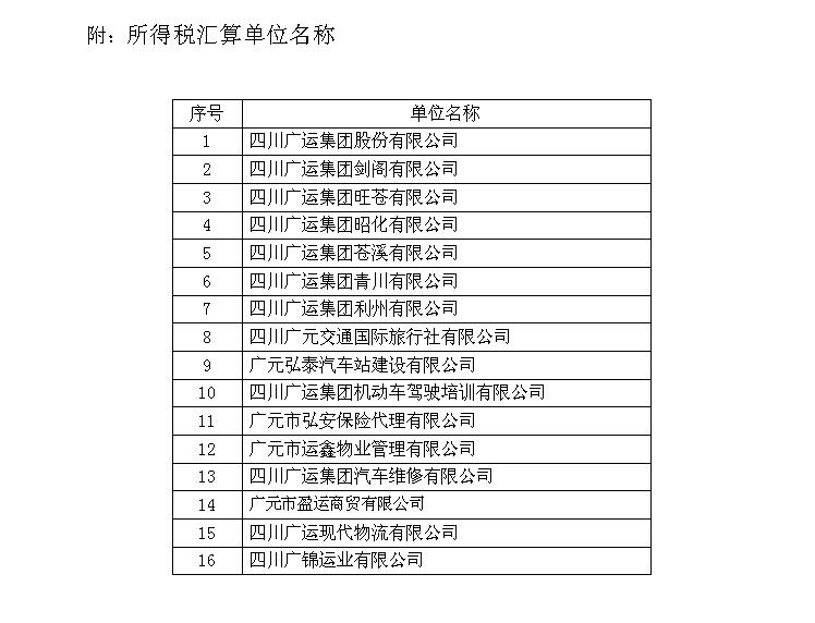 按照稅收法律、法規(guī)及行業(yè)規(guī)定,對公司2015年的企業(yè)所得稅進行匯算,并出具匯算清繳報告。匯算范圍為廣運集團股份有限公司及其廣元市行政區(qū)劃內的15家子公司。